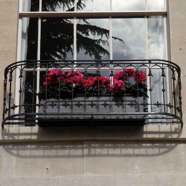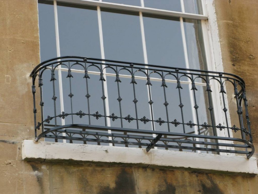 Reproduction of a balconette following the style on the same street in Bath. With decorative lead cast details and hoops.