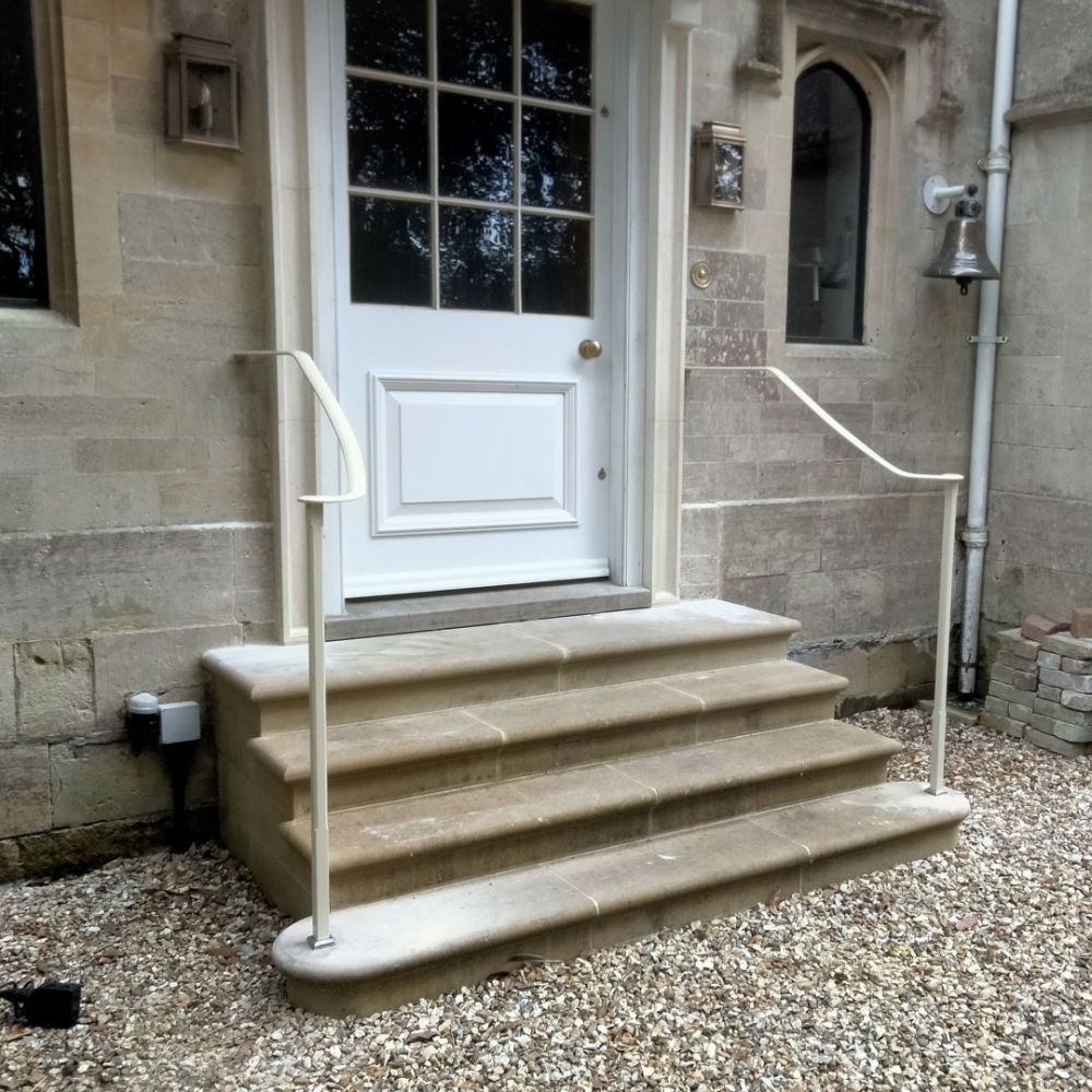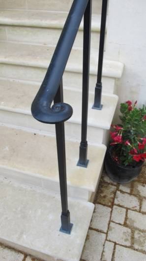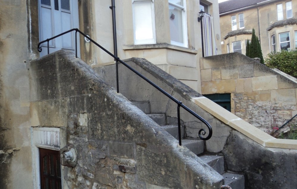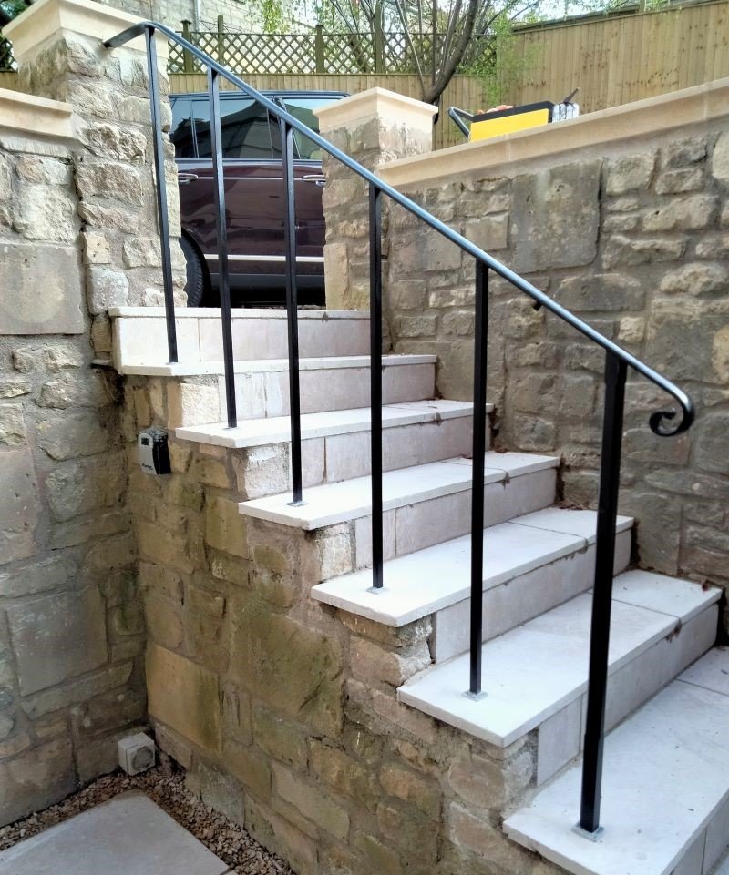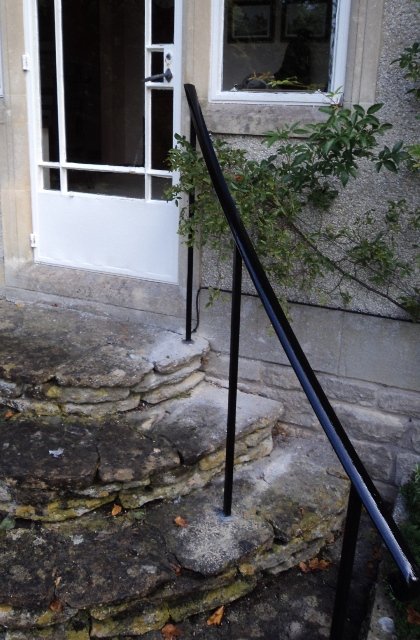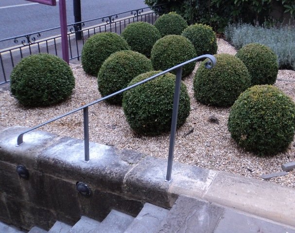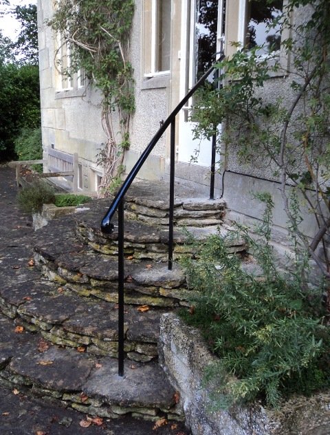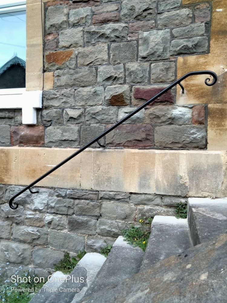 Forged handrails are a brilliant solution for entrance steps or garden stairs. They can be made to conform to awkward spaces, and can have as much or as little detailing as you like! This is a gallery of some of the very simplest yet elegant handrails we have made. If you need a handrail for your property, please get in touch, we’d love to help.