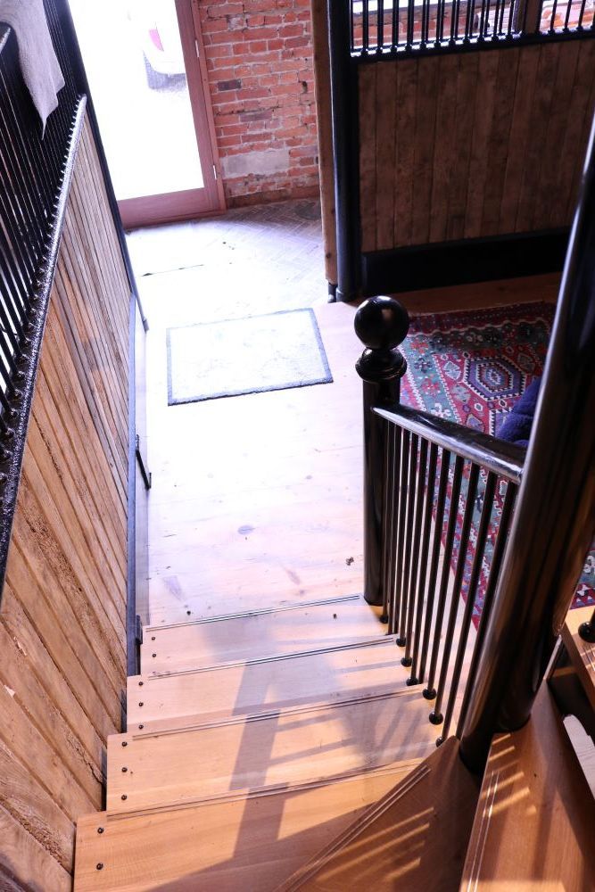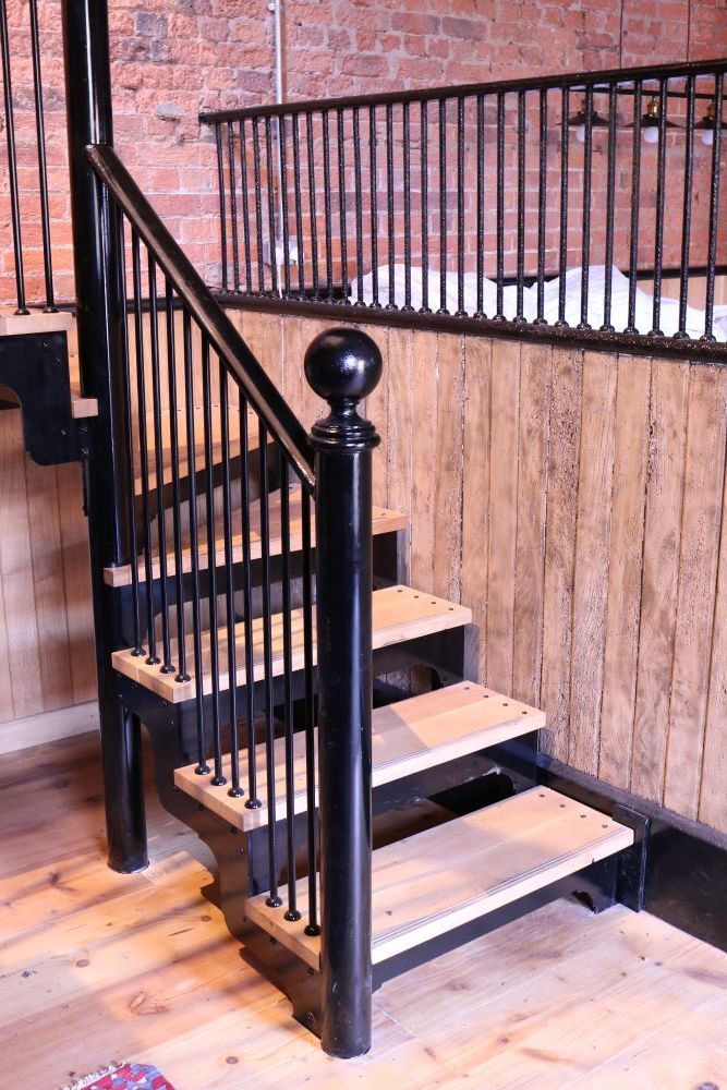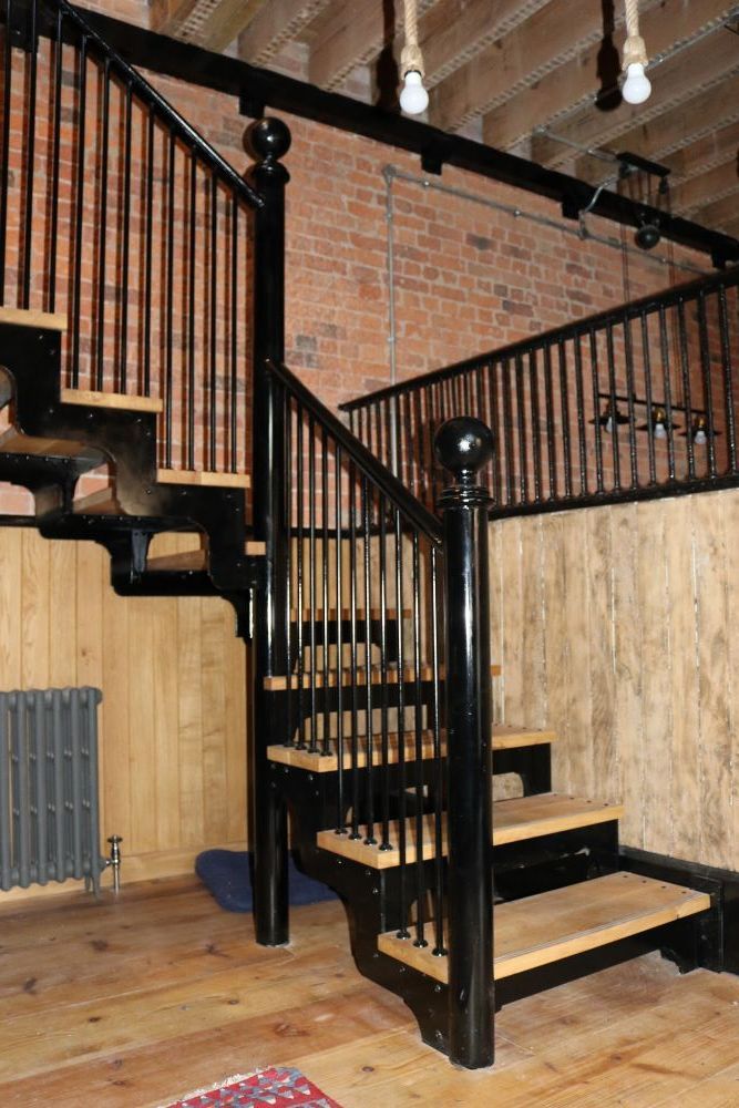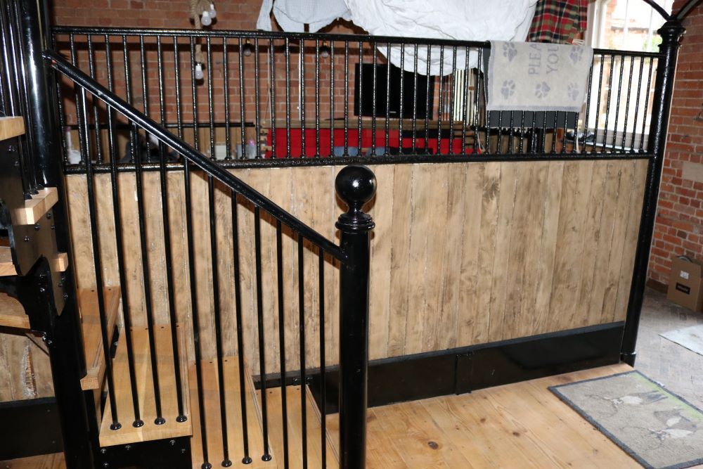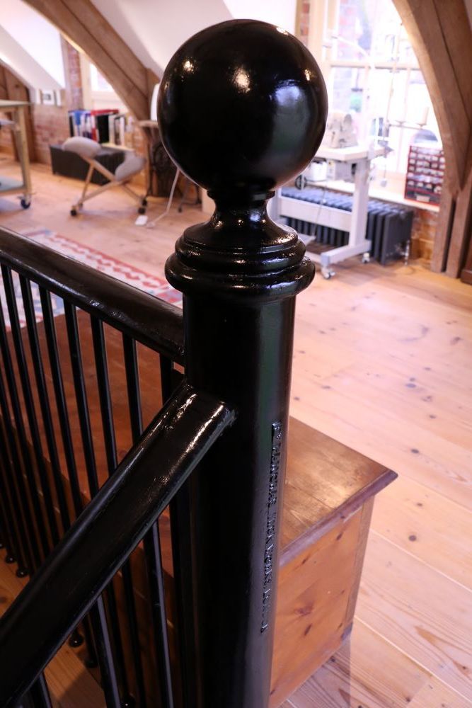This unusual staircase project was an old Victorian Stable block with original stable stalls still in place. The owners wanted to emulate the ironwork of the stalls within a new staircase. We reclaimed and incorporated two of the original cast iron stall posts complete with the foundry’s makers mark and where necessary we replicated them with cast finials and new columns. We also replicated the cast iron handrail and the collar detailing on the original plinth. The stairs were completed with lovely timber treads to echo the new timber floors and the timber panelling details from the original horse stalls.