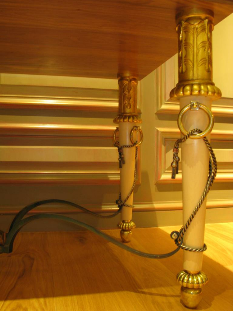 We worked from one small conceptual image to recreate the design elements of this intricate and ornate table. Once our overall design was signed off, work began in earnest here in the Ironart workshop to create each individual componant of the sofa table. With enormous attention to detail, the team drew on all their expertise to recreate a truly stunning and completely unique piece of interior furniture.