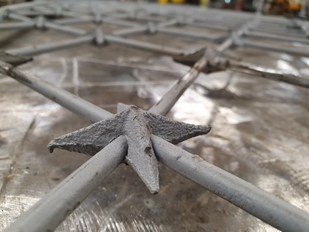 The second project featured here is from Sion Hill, Clifton in Bristol. We are repairing and restoring a large mid-Victorian balcony and canopy. The original ironwork was created between 1845 and 1873. The canopy was in varying states of degradation because of its location with a perfect view overlooking Clifton suspension bridge but in full receipt of the weather from Clifton Gorge for the last 170 years. Now it has been removed and taken back to our workshop, all the paint has been stripped off revealing stamps of Abadaire Ironworks where it was originally fabricated.