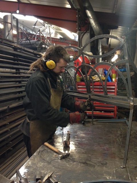 As well as project-managing bespoke ironwork commissions, James has been furniture-making and involved in several ironwork restoration projects. He has also been using his knowledge of CAD software to assist Andy with design. James says of his experiences:“This third year has been a positive experience. I’m happy that I made this decision, it was the right journey for the right reasons. The apprenticeship has opened more avenues and curiosities than I could have envisaged – the people I’ve met and places I’ve worked. I’ve gained a valuable insight into the processes around our craft. I’ve enjoyed the extra-curricular stuff we’ve done too, the day trip we went on in 2014 to Wolverhampton (to visit Legg Brothers steel mill, Barr & Grosvenor Foundry and a huge galvanising plant) helped to improve my breadth of knowledge.”