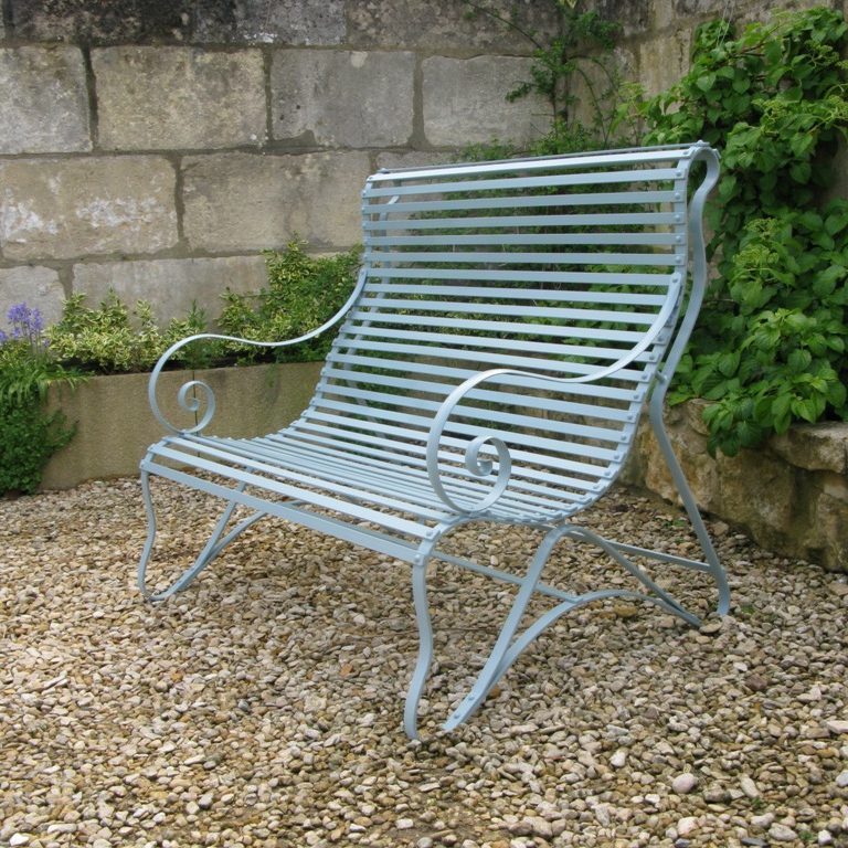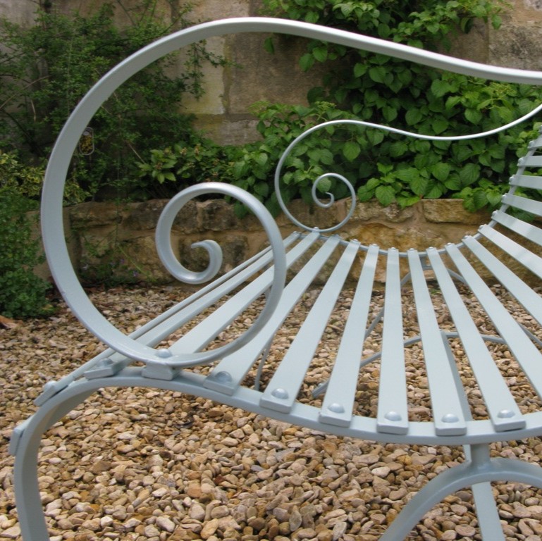 Each Lansdown garden bench is finished with rivet detailing and hand-forged scrolls.