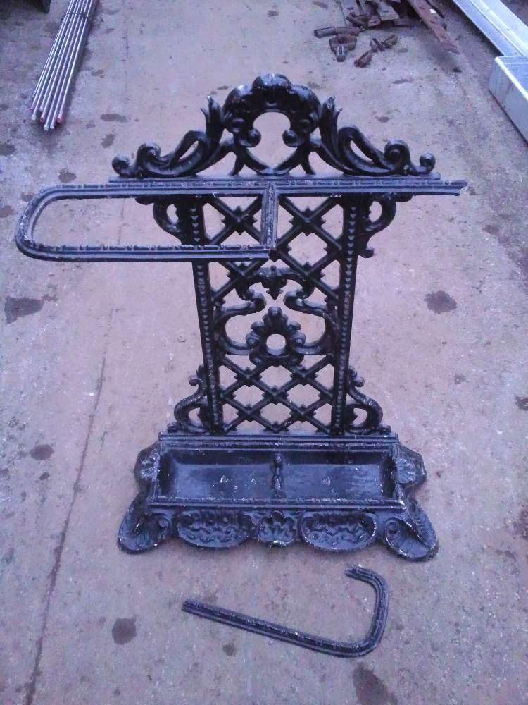 Cast iron umbrella stand repair The Ironart team repaired the broken arm of this decorative Victorian cast iron umbrella stand. If you have a similar project in mind, please get in touch, we would love to help.